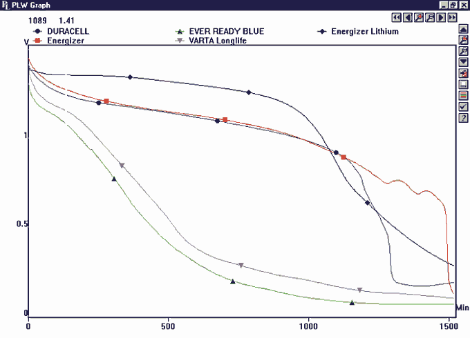 有沒有想過哪個商用電池實際上持續時間最長?ADC-16數據記錄器是回答此問題的理想工具。 請注意 - 本應用筆記已有幾年歷史,所示的ADC-16數據記錄器現已停產,電池技術/容量已發生變化。如果您希望重新創建此實驗,方法不會改變,但我們建議使用當前范圍的USB數據記錄器。