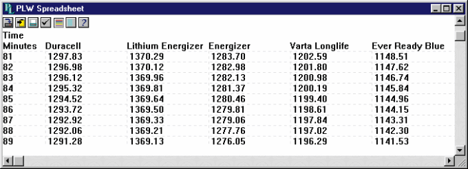 按下錄制按鈕,開始數據記錄實驗。當ADC-16收集數據時,可以以圖表格式或電子表格查看電池放電。
