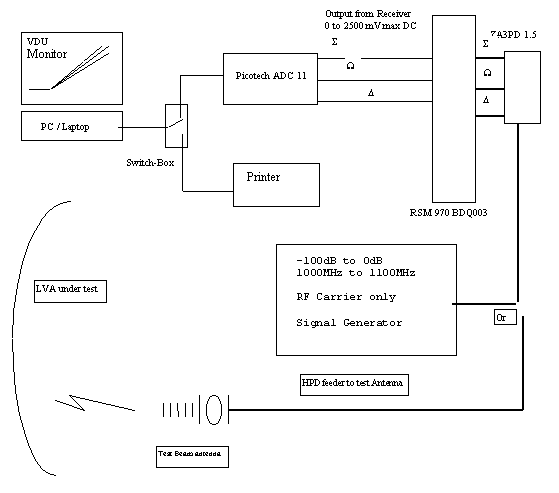 動(dòng)態(tài)范圍測(cè)量程序 使用短N(yùn)型同軸電纜將Mini-Circuits ZA3PD-1.5功率分配器連接到Sigma,Omega和Delta的耦合端口,讀取到IR機(jī)柜。 使用從ZA3PD-1.5輸入到Gigatronics信號(hào)發(fā)生器的任何長(zhǎng)同軸N型饋線。 將信號(hào)發(fā)生器頻率設(shè)置為1090 MHz,將輸出電平設(shè)置為-100 dB電平,增量步長(zhǎng)為0.1 dB分辨率。 連接BDQ 003接收器輸出和ADC-11終端之間的三根同軸電纜(BNC),標(biāo)記為Sigma,Omega和Delta。(見圖1)。 將ADC-11的輸出連接到PC /筆記本電腦的LPT1(打印機(jī))端口上的開關(guān)盒,然后選擇與計(jì)算機(jī)的連接。 運(yùn)行用于ADC-11的Picotech Scope專有軟件,選擇時(shí)基為10秒/格,觸發(fā)為自動(dòng),這將在屏幕上顯示超過90秒的顯示時(shí)間,或加載以前的文件。 設(shè)置注釋以反映測(cè)試標(biāo)題和被測(cè)接收器的序列號(hào),以及適當(dāng)?shù)臏y(cè)試條件。dB級(jí)別 選擇通道1,2,3,A,B,C,分別設(shè)置為紅色,藍(lán)色,綠色。選擇伏特和通道增益“乘以(1)”。這顯示了各個(gè)顏色的樹輸出。 釋放雷達(dá)頭并將傳輸單元設(shè)置為手動(dòng),以防止耦合器中的高水平RF,泄漏到主動(dòng)接收器到天線,導(dǎo)致接收器報(bào)警,以及任何后續(xù)設(shè)備切換。 按PC上的空格鍵開始繪圖掃描,觀察顯示器上的接收器噪音。約。250 mV基線水平(參見第1號(hào)) 當(dāng)顯示的掃描達(dá)到10秒時(shí),以恒定的速度啟動(dòng)信號(hào)發(fā)生器掃描,在不到90秒的時(shí)間內(nèi)從-100 dB到不超過0 dB。 觀察計(jì)算機(jī)顯示屏,紅色,藍(lán)色和綠色圖對(duì)角線上升到屏幕的右上角,靠近90秒點(diǎn),關(guān)閉信號(hào)發(fā)生器的RF并按空格鍵保存顯示內(nèi)容。 您現(xiàn)在可以在反映測(cè)試源的新文件名下保存測(cè)量值(即H22FEB023,Head 2,IR 2,Month,Receiver No.)。顯示帶有時(shí)間戳。 將開關(guān)盒翻轉(zhuǎn)到打印機(jī)并復(fù)制測(cè)量值以確認(rèn)注釋和日期等的詳細(xì)信息。 如果要測(cè)試另一個(gè)接收器,請(qǐng)使用傳輸單元選擇第二個(gè)接收器,返回步驟6并按順序執(zhí)行。 通過清除接收器警報(bào),斷開所有同軸電纜,并將傳輸單元置于“自動(dòng)”,將電臺(tái)恢復(fù)正常。