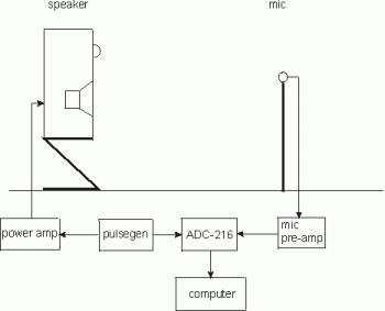 下一階段是連接設備(圖2)。請注意,電脈沖輸入ADC-216以及從麥克風接收的脈沖。這意味著您可以在開始聲學測量之前檢查電脈沖的帶寬。最好還要檢查功率放大器的輸出,以確保它不會被脈沖輸入過載。從麥克風輸出很難檢測到這種過載,因此請檢查功率放大器的輸出是否在其額定值范圍內。