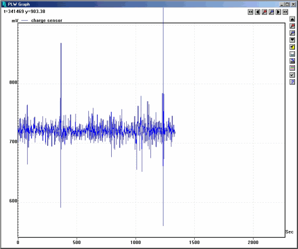 圖4顯示了一個(gè)帶有一些電活動(dòng)的重型淋浴器,它接近并在遠(yuǎn)處通過(guò)。記錄開(kāi)始時(shí),淋浴間距離漂移,第二次淋浴接近,導(dǎo)致當(dāng)?shù)厮絻x開(kāi)始上升到儀表斷開(kāi)且實(shí)驗(yàn)停止的程度。