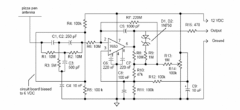 輸入過濾器 可能需要進行第三次修改以“重新調諧”前端的濾波器以拒絕50 Hz而不是設計用于的60 Hz美國電源。 參考電路圖,C1和C2由330 pF電容代替,C3代替680 pF電容(優(yōu)化值:660 pF)。電阻R1和R2為10MΩ(優(yōu)化值:9.64MΩ),R3為4.7MΩ(優(yōu)化值:4.32MΩ)。使用非最佳值會產生48 Hz的陷波頻率,如果需要,可以通過修整元件值來優(yōu)化。 計算值的公式為: Fc = 1 /2πRC,其中Fc是赫茲,R是歐姆,C是法拉。