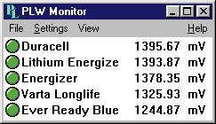 PicoLog記錄器程序設置為在電池放電時監控和記錄電池。選擇實時連續記錄模式,因為數據以低采樣率收集,每分鐘一次。(PicoLog在此模式下每秒最多可記錄10個樣本)。每個通道都有適當電池的名稱。設置完成后,監視器將顯示所有五個通道的mV讀數。