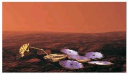隨著Beagle 2進入火星大氣層,隔熱罩的下降速度超過5.5 km / s或12,000 mph,并可防止探頭過熱和燒毀。降落傘幫助這個第一個任務,然后掉下來,帶上后蓋。然后打開主降落傘并放下隔熱罩。在地面附近,雷達高度計檢測到已達到正確的高度,以便給三個氣囊充氣,這些氣囊充氣并緩沖航天器的著陸。一旦與火星表面接觸,氣囊和降落傘就會消失,Beagle 2將最后一米落到地上。 一旦在表面上,彈簧機構打開著陸器的兩半,展開太陽能電池板,各種科學設備及其機器人手臂,如圖2所示。 這項科學實驗顯示了氣囊對Beagle 2著陸的影響。