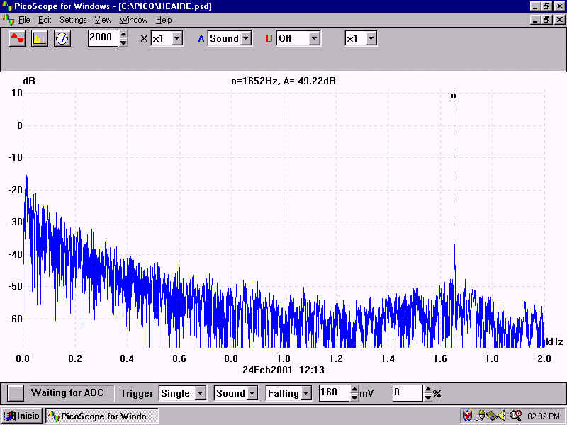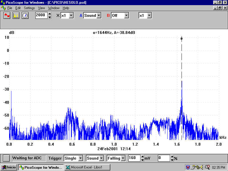 實驗結(jié)果 我們在步驟1中得到一個頻譜,如圖1所示。我們在該頻譜上標記頻率1644.然后我們在風(fēng)扇打開的情況下進行測試并觀察頻率的變化,因為最強的頻率轉(zhuǎn)移到1652 Hz點(圖2) )。