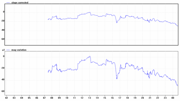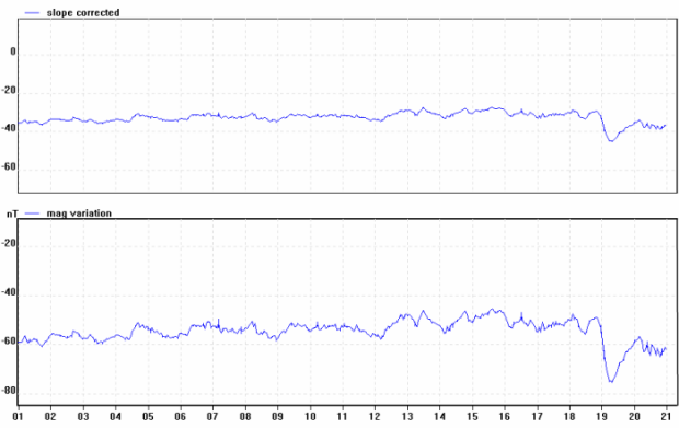 19:20的急劇下降可能是太陽風(fēng)暴的開始,但事實(shí)證明只不過是一個(gè)“曇花一現(xiàn)”。