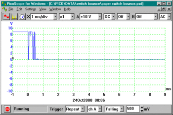 介紹 使用廉價的基于PC的示波器,我們可以測量機械開關改變狀態時發生的噪音。此處描述的實驗測量開關穩定所需的時間,并顯示一種減少彈跳效果的方法。