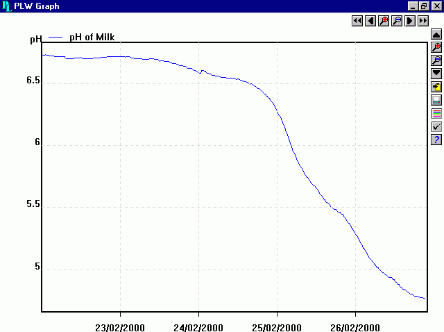 Q4。計算實驗期間獲得的pH變化程度。 A4。 這在一定程度上取決于學生的成績。對于我們的圖表,牛奶經歷了pH值變化1.95(6.75-4.8)。