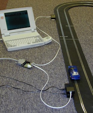 這個想法是記錄一個scalextrix汽車在兩點之間通過的速度。為此,兩個簧片開關安裝在軌道旁邊,它們之間的距離為1米。