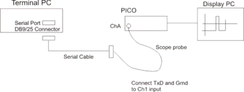 實驗設置 實驗設置如圖1所示。串行數據可從標準PC上的串行端口訪問。串行端口通常是DB9連接器或DB25連接器。圖2顯示了標準PC DB9類型串行端口的圖片。由該端口連接一個由母/凹DB9連接器組成的適當串行電纜。 ADC-200/20 CH A輸入通過串行電纜連接到串行端口上的發送數據和接地連接。請注意,您可以使用與ADC-200/20相連的PC進行串行傳輸,也可以使用獨立PC。為方便起見,圖1顯示了單獨的PC。