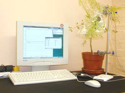 實(shí)驗(yàn)設(shè)置 如圖所示設(shè)置該裝置。濕度和溫度傳感器連接到DrDAQ數(shù)據(jù)記錄器,然后將其插入PC。 將植物的一個(gè)分支,濕度傳感器和溫度傳感器放入聚乙烯袋中,并用繩子捆住末端。 PicoLog設(shè)置為每秒一個(gè)樣本記錄,最多1200個(gè)樣本(即20分鐘的數(shù)據(jù))。圖表設(shè)置為顯示濕度。電子表格設(shè)置為顯示濕度和溫度。