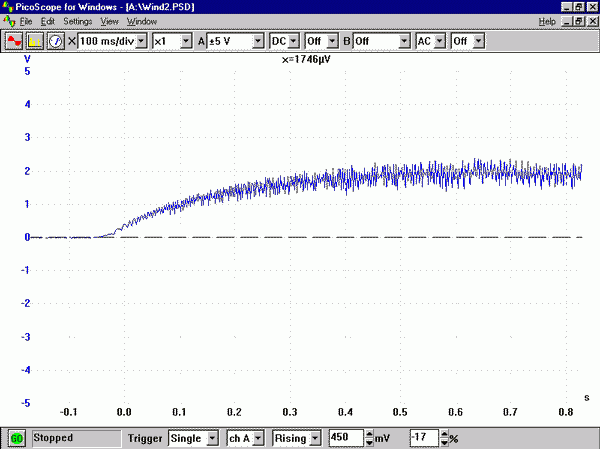 Q3。發(fā)電機的平均輸出(直流分量)是否隨時間線性增加?(也就是說,你可以通過軌跡畫一條帶直尺的直線嗎?)這告訴你減重的速度是多少? A3。輸出在前0.1秒左右線性增加,但不能在整個跡線中繪制直線。這表明加速度不是恒定的,并且隨著時間的推移,速度增加的速度變得越來越小。可以通過考慮負(fù)載上的合力來解釋該效果。由于軸承和發(fā)電機中的摩擦,重力的空氣阻力和發(fā)電機電樞中的電磁力(楞次定律)向上作用,我們有重力向下拉動和阻力。向下的重力保持不變,但隨著速度的增加,所有向上的力都會增加。隨著速度增加,所產(chǎn)生的向下力減小,因此加速度變小。