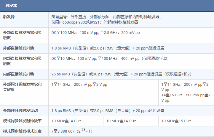 ·高達15 GHz預分頻,2.5 GHz直接觸發和11.3 Gb / s時鐘恢復