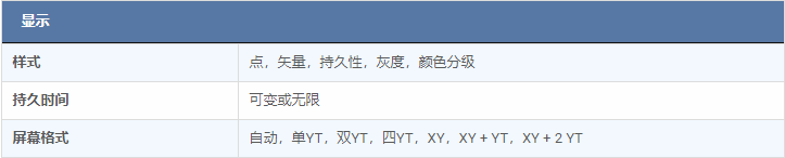 使用多個跡線時,可以在一個網格上顯示所有跡線,也可以將它們分成兩個或四個網格。您也可以在XY模式下繪制信號,無論是否有額外的電壓 - 時間網格。持久性顯示模式使用顏色編碼或陰影來顯示信號的統計變化。跟蹤顯示可以是僅點或矢量格式。