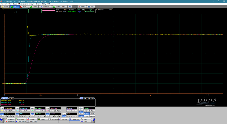 現在我們有了一種技術(ETS)來擴展實時示波器的采樣率,我們發現我們可以實現遠高于匹配儀器模擬帶寬所需的有效采樣率。為了更好地利用這些高效采樣率,我們可以增加示波器的模擬帶寬。與提高實時采樣率的非常高的成本相比,Pico已經開發出一種以適中的成本實現這一目標的方法。結果是采樣器擴展的實時示波器(SXRTO)。