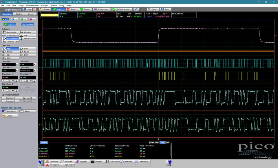 PicoScope 9404-05最多支持四種數學組合或采集波形的功能轉換。