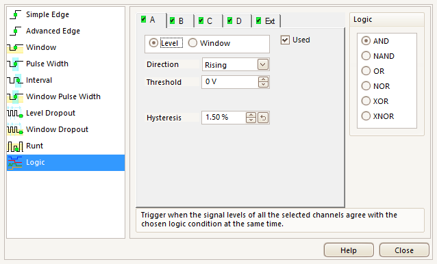 PicoScope 3000系列提供高級觸發器,包括脈沖寬度,窗口和壓差。此外,邏輯觸發允許您在16個數字輸入中的任何一個或全部與用戶定義的模式匹配時觸發示波器。
